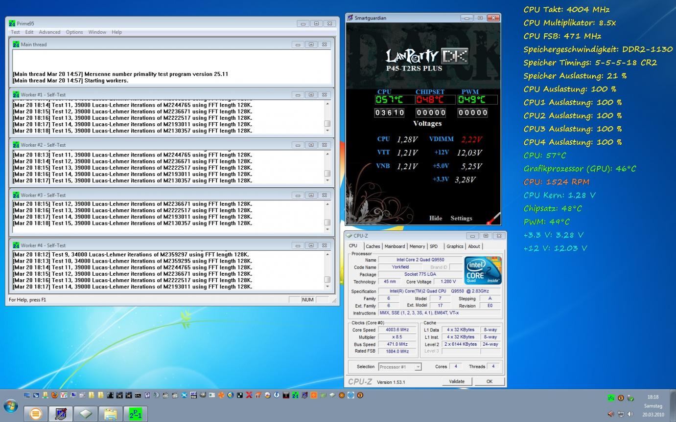 Das System läuft auch im moment mit 8,5x471 (4GHz), aber ob das Stabil ist kann ich nicht sagen, sieht abe schonmal sehr gut aus, ich konnte mit 471FSB netmal vernünftig booten :)