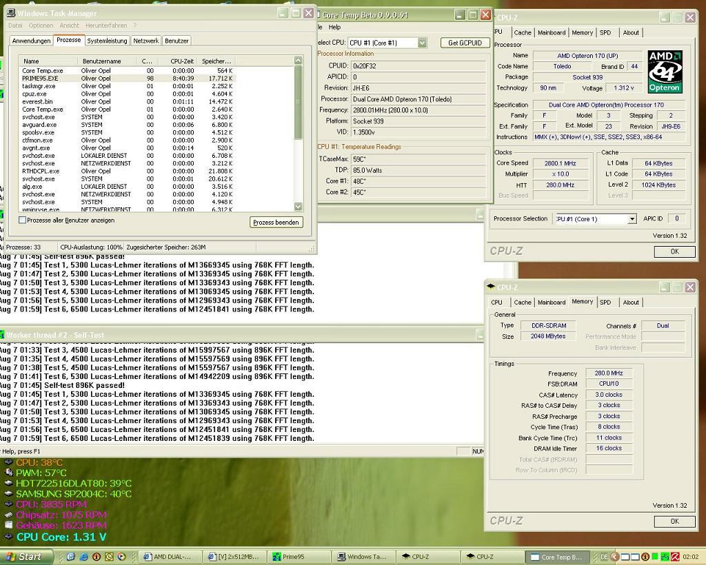- 2x 16 GB Lexar Ares 6200 cl28 @ OCZ Kühler