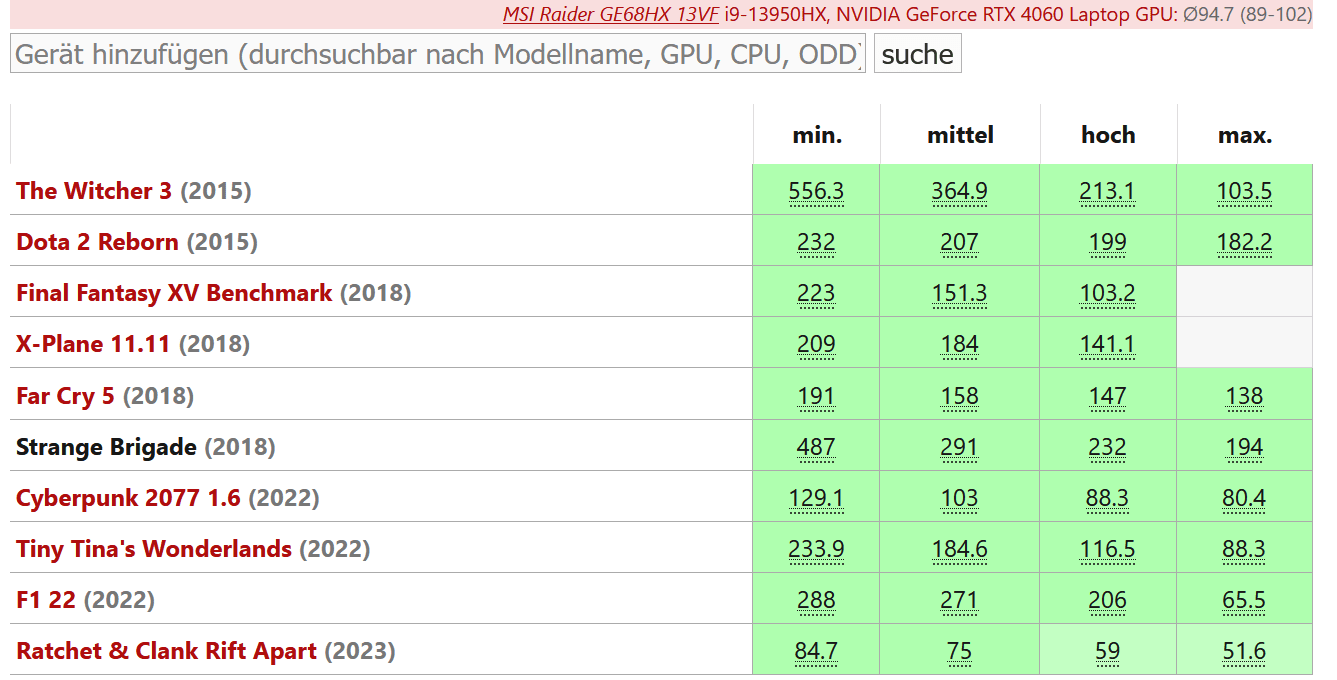 hat hier jemand einen Vergleich von einer 4060 im Lappy mit bis zu 140W ? Leistet die dann wirklich mehr als eine mit z.B. 115W maximal ? Oder throttelt die dann ohnehin aufgrund von Temperatur !?