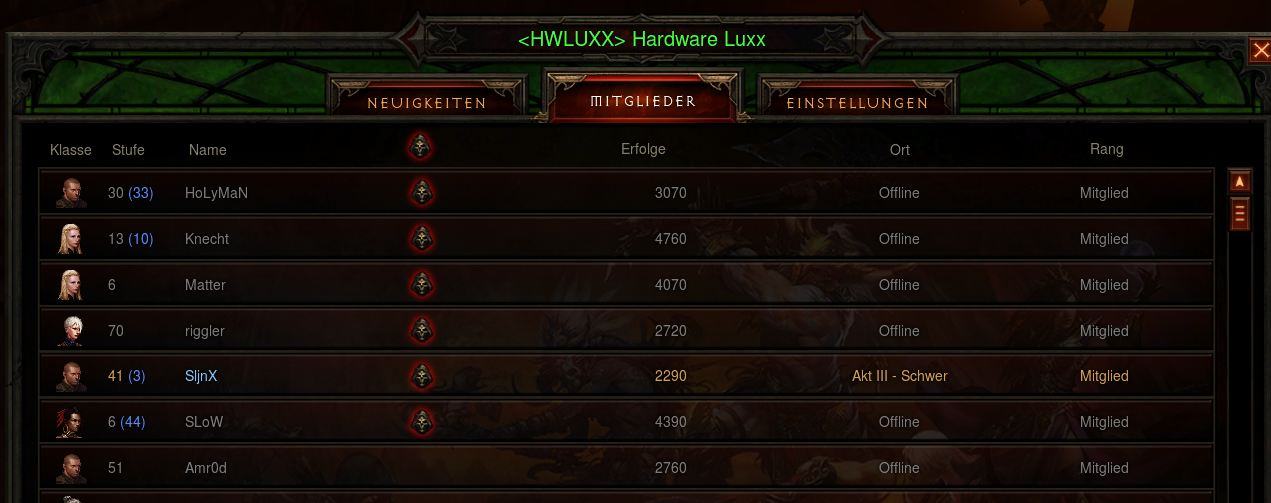 Hi Jungs falls noch ein Platz frei wäre würde ich mich freuen ^^. spiele regelmäßig diablo