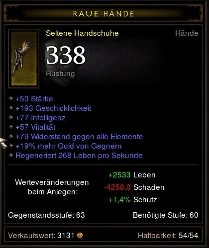 Das Problem ist, an den Handschuhen sind Resis allein nicht wirklich gefragt. Mit Attackspeed oder/und Crit wären die Teile sicher einiges wertvoller.