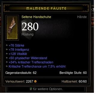 Es sind welche drin mit MF oder Life.Leider kein Critchance drauf, aber ich denk mal trotzdem so 100 Mio könnte der sicher bringen, keine Vergleichbaren im AH mit weniger MF ?
