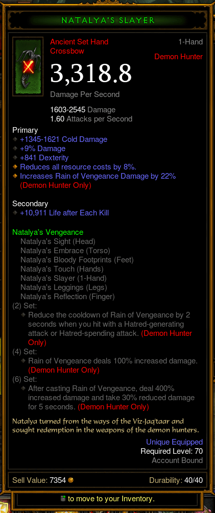 Hi Pat, haha ja deinen Barb hab ich mir am Wochenende ingame mal angeschaut, sieht schon echt super ausWie hoch kommst du in GRifts damit? Ich hab in der Truhe noch eine Ancient IK-Waffe liege, jedoch nocht nicht mit den %CotA-Schaden. Aber für den Anfang dürfte sie glaube ich reichen.