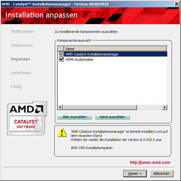 Kann nur AMD Catalyst-Installationmanager und HDMI-Audiotreiber.