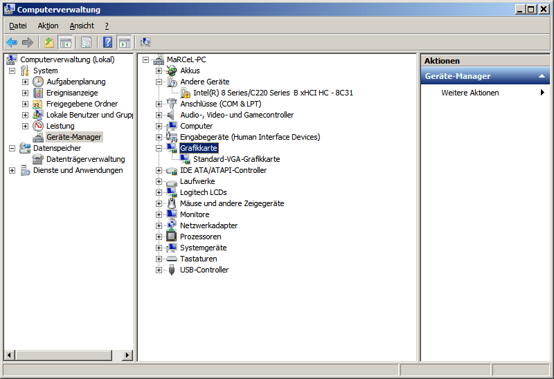 Im Gerätemanager steht unter Grafikkarte "Standard VGA".