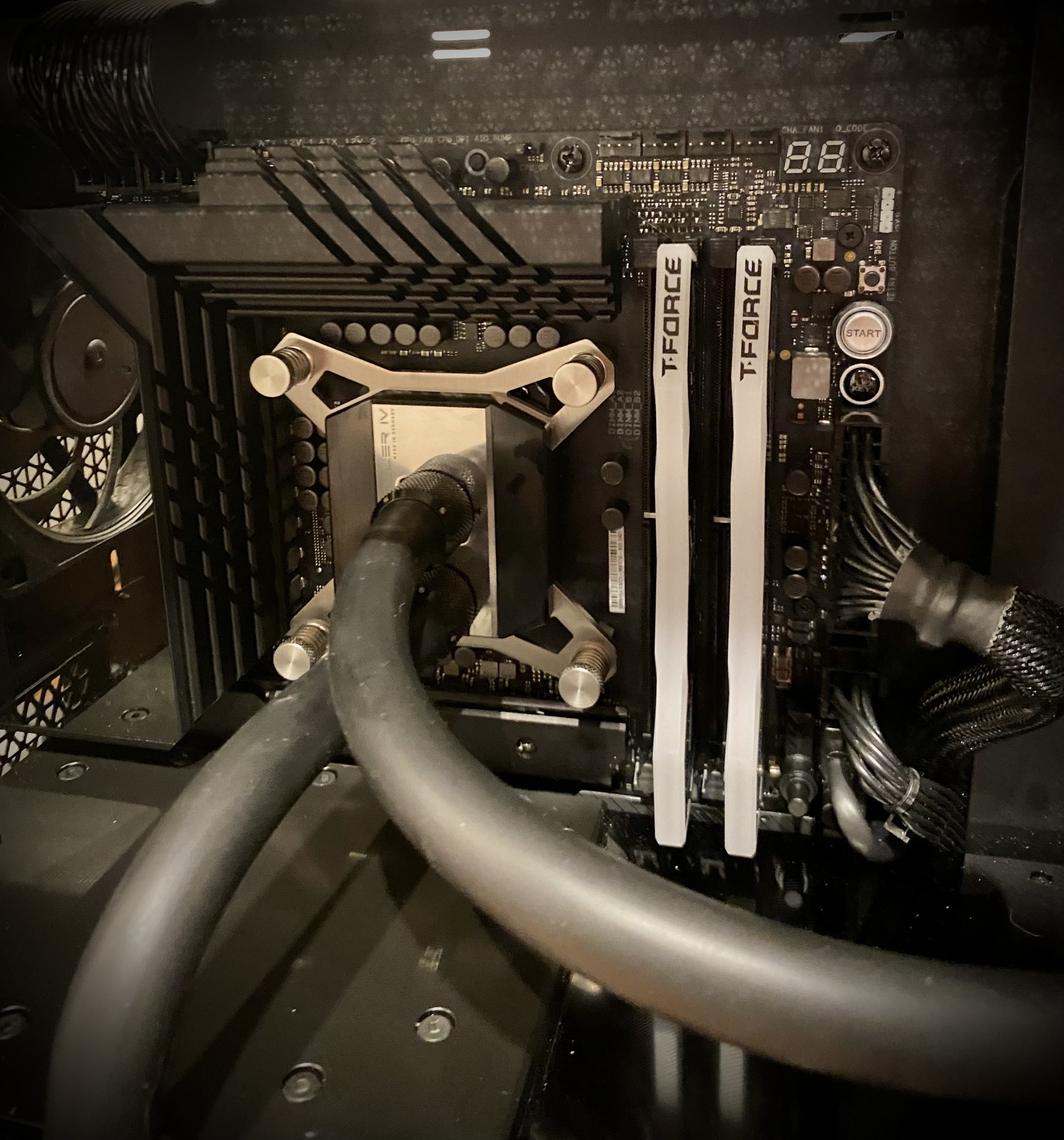 Bin froh den Umbau gemacht zu haben. Ich will hier nicht alles auf den Velocity² schieben. Vielleicht bin ich bei der Montage dessen nicht extrem geschickt, aber ich habe tatsächlich alles Erdenkliche versucht. Verschiedene Anpressdrücke, Frame, Washer Mod.. Eventuell gibt es Leute, die diesen Kühler besser montieren können, aber es ist sowieso nicht wirklich komfortabel von der Rückseite des Mainboards aus. WLP Abdruck sah aber immer gleichmäßig (gut) aus. Verunreinigungen kann ich auch ausschließen, benutze nur Kupfer, Acetal, EPDM Schläuche und DP Ultra Clear im Kreislauf.