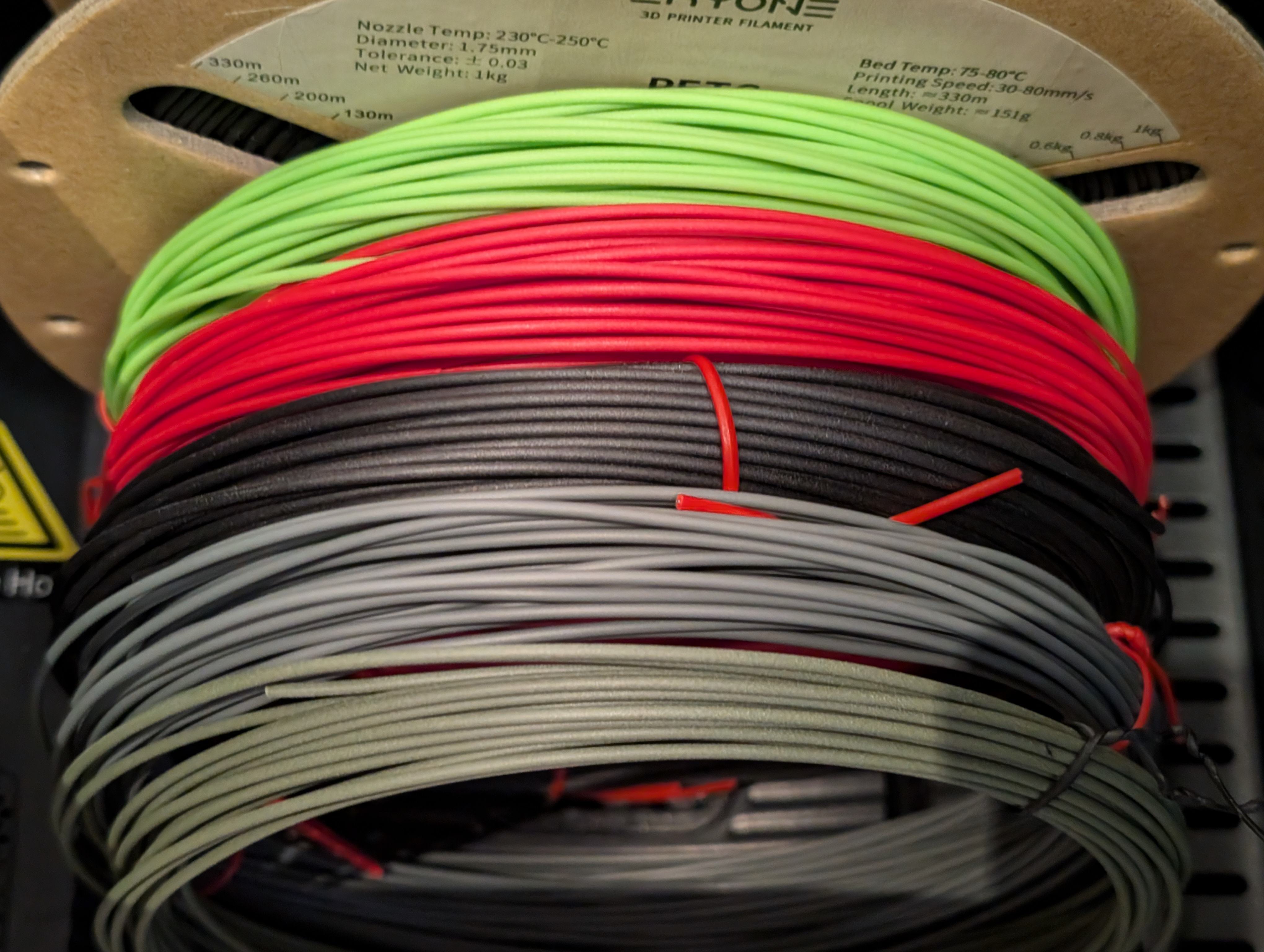 Hmm, ich glaub ich muss mir doch mal ein Umwickelgerät mit Längenmessung bauen. Ich hab in letzter Zeit wieder viele Drucke, wo ich entweder viele Einzelteile im Copy-Modus oder sogar Mirror-Modus brauche, aber natürlich aus dem selben Filament haben will.