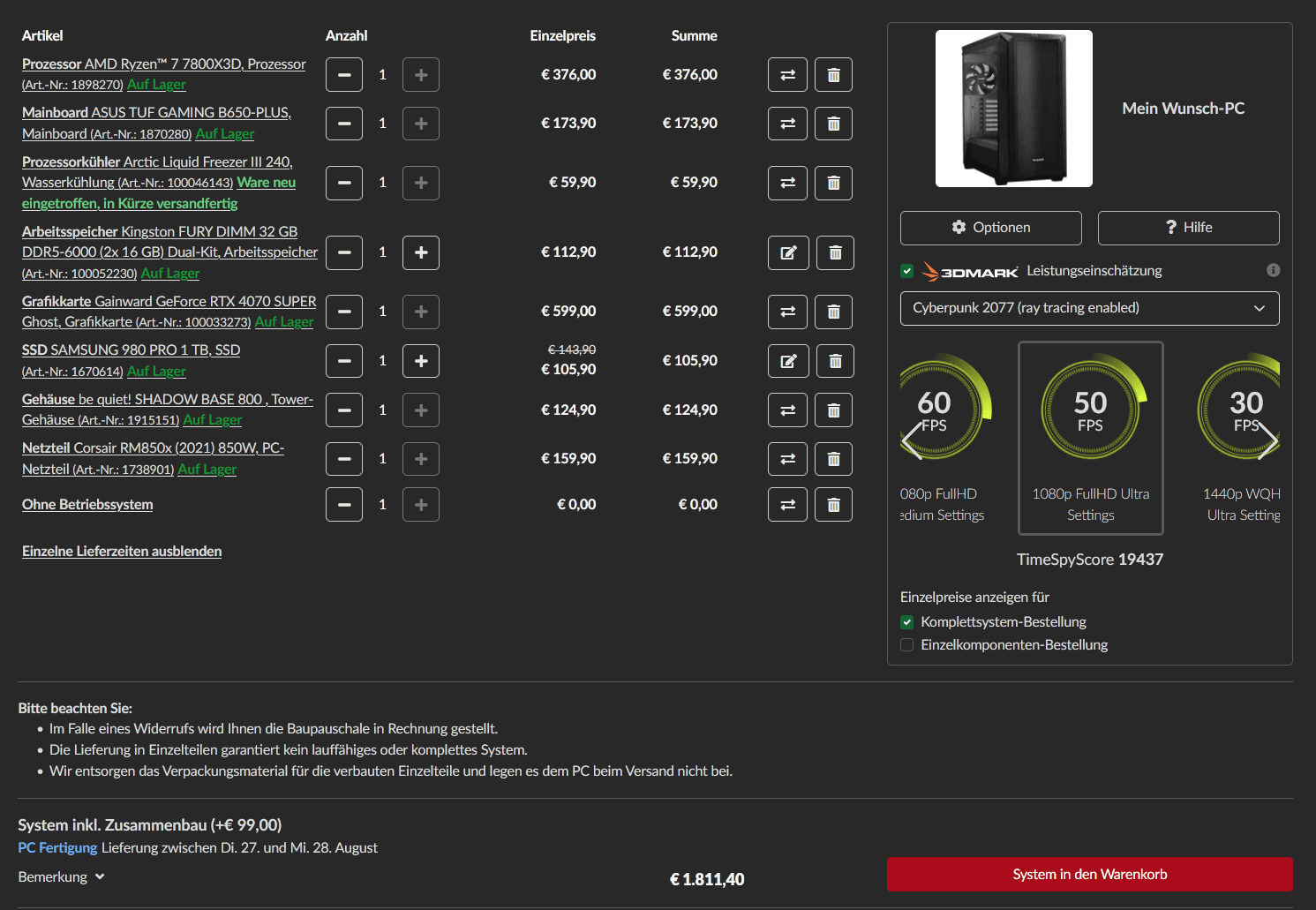 Dank der (ich werde mich daran nicht gewöhnen!) Grafikkartenpreise seit 2021 ist das heute noch der Bereich für einen neuen PC der gehobenen Mittelklasse.übrigens für 1822,37 € im Aldi stehen