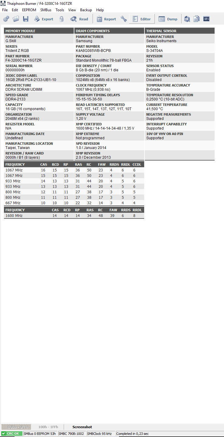 Bilder, Quotes, Screenshots, Tests/ReviewsAnmerkungen F4-3000C14D-64GTZDC 2x32GB DDR4-3000 14-14-14-34 1.35V ja Q1 F4-3200C14D-64GTZDCB 2x32GB DDR4-3200 14-15-15-35 1.35V ja Q1 F4-3200C14D-64GTZDC 2x32GB DDR4-3200 14-14-14-34 1.35V ja Q1 / T1 / T2 Zadak Specs 8Gb B-Die