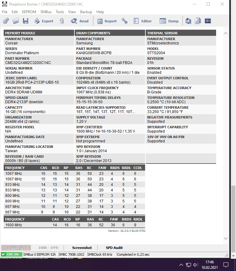 Bilder, Quotes, Screenshots, Tests/ReviewsAnmerkungen AS16GGB30CFYBGD (78.D2GFH.4030B) 2x16GB DDR4-3000 18-20-20-38 1.35V ja T1 Corsair Specs 8Gb B-Die