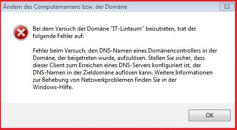 Jetzt wollte ich ein Windows 7Pro Notebook in die Domäne einfügen, die IPconfig ist auf Automatisch gesetzt, wenn ich den Domänen beitritt mache, gebe ich Administrator+Passwort an, nach einigen Minuten kommt die Meldung