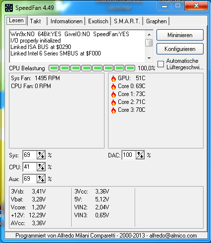 In einigen Belastungtests zeigte sich jedoch, dass die Grafikkarte bei starker Belastung das Wasser so sehr erwärmte, dass die CPU über die 60°C kam.