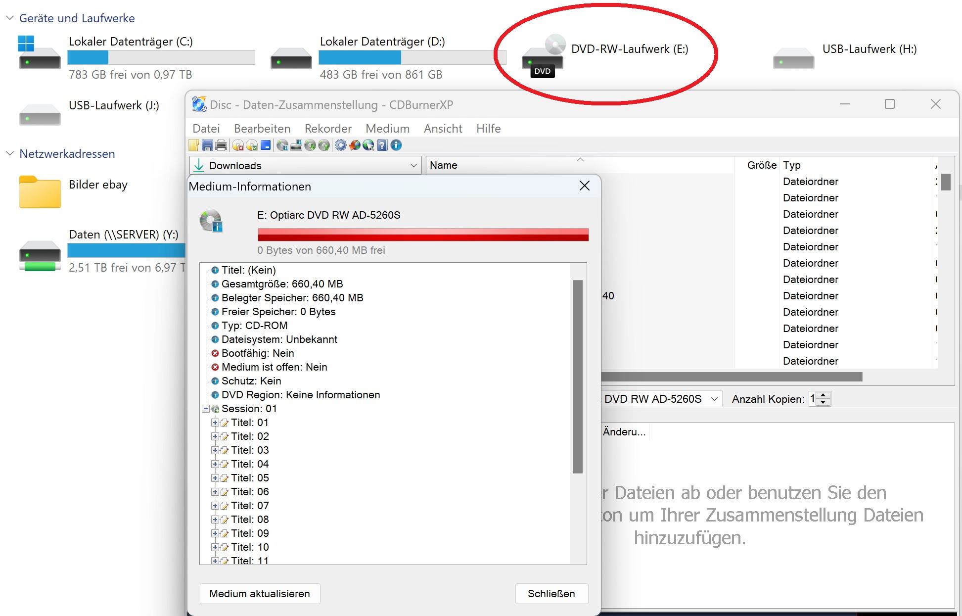 Egal was ich nach dem starten des PCs für eine Scheibe einlege, es wird nichts erkannt. (RAW) und die Scheibe wird beim Doppelklick ausgeworfen.