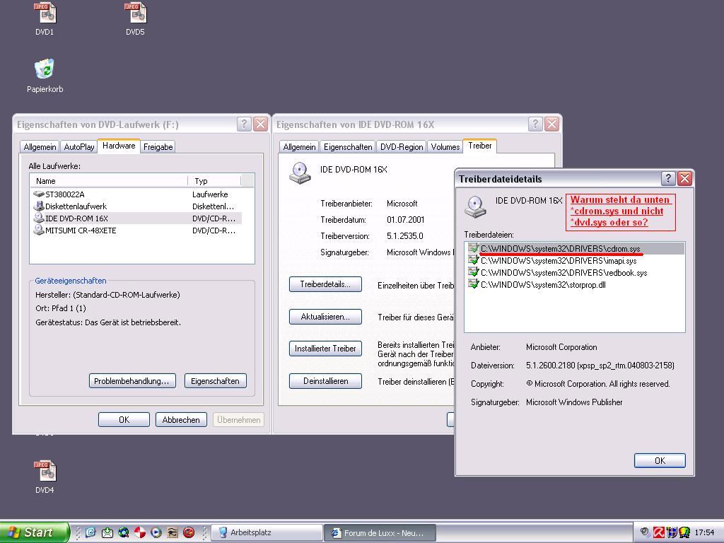 Treiber hab ich auch schon versucht zu aktualisieren ... er erkennt Treiber im WINDOWS/SYSTEM32 Ordner ... Aber ==> kein DVD ???
