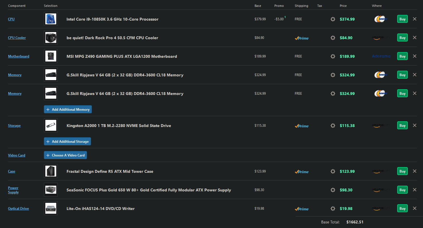 Mind. 12 Cores (ohne HT), bevorzugt AMD, 128 GB Memory, Leise wäre sicher gut. Dann noch 1 TB SSD Speicher