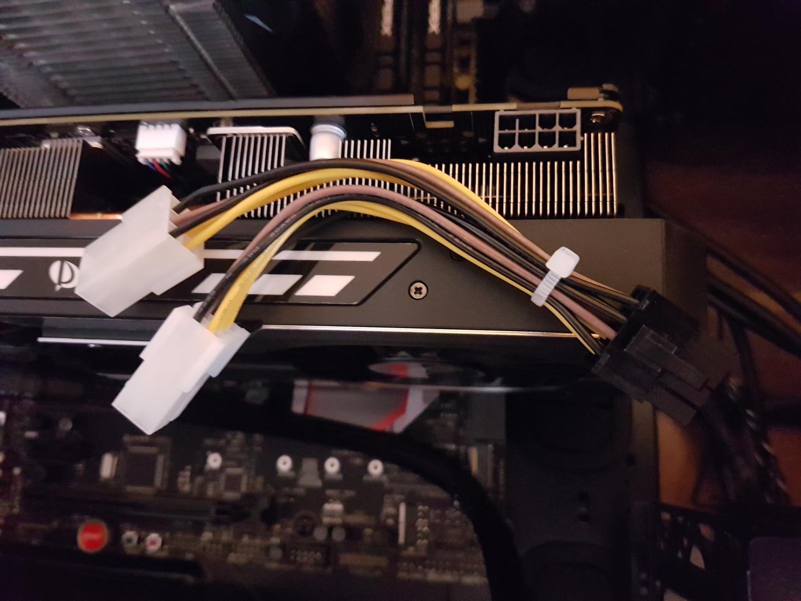 Da muss ich zustimmen, von der Leistung her würde das aufgehen :d (ein 6Pin darf 75Watt liefern und ein 8Pin 150) aber ohne Adapter ist immer die bessere Lösung