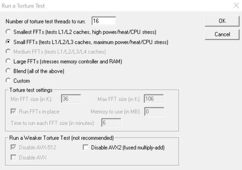 Teste das ganze lieber mit Prime Custom. Bei AMD weiß ich nicht welche am "besten" heizt. Ich habe bei meinem 9900K mit 12K getestet. Denn die großen Ks erzeugen nicht so viel Last/Hitze.