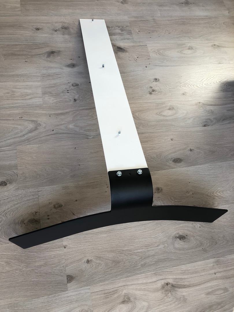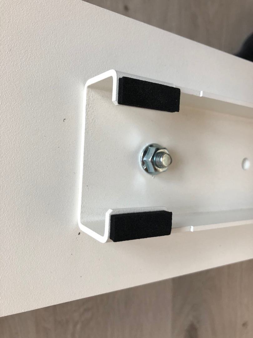 Die Komplette Konstruktion besteht aus 5mm dickem Stahl, weiß und schwarz Lackiert. Der Hersteller wirbt damit, dass man diese einfach Überlackieren kann um diese Farblich seiner Wand anzupassen. Die Halterung wird in Einzelteilen geliefert und deren Verarbeitung ist sehr Hochwertig.