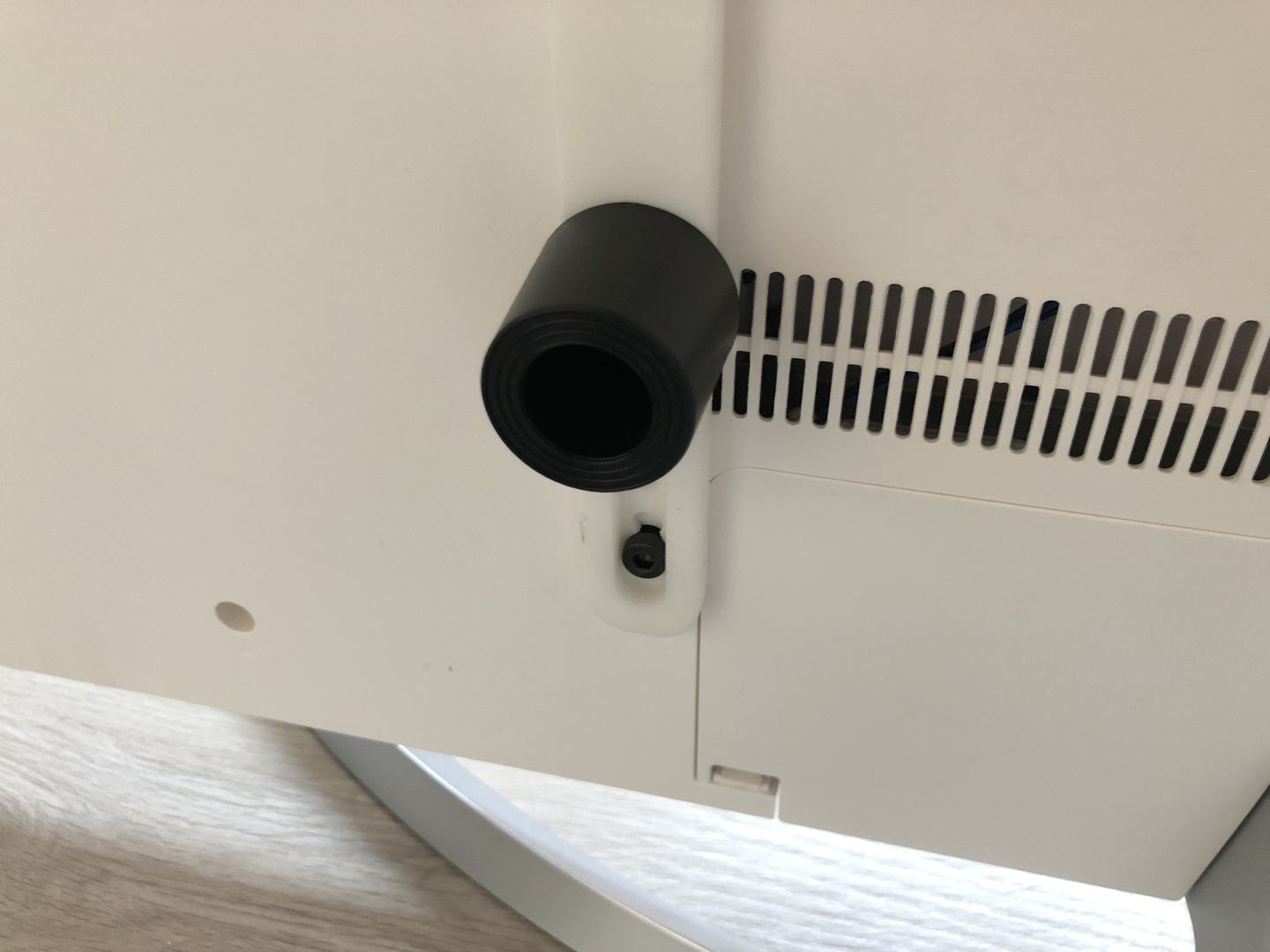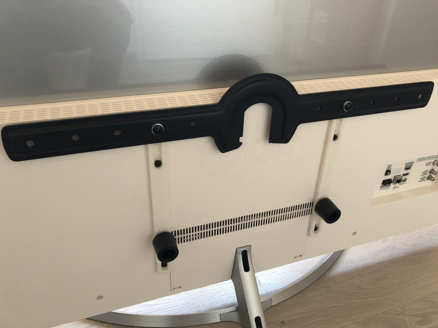 Nun werden die zwei Abstandsfüßchen und die TV Aufnahme angebracht. (hier im Bild falsch herum, habe verschwitzt ein neues Bild zu machen)