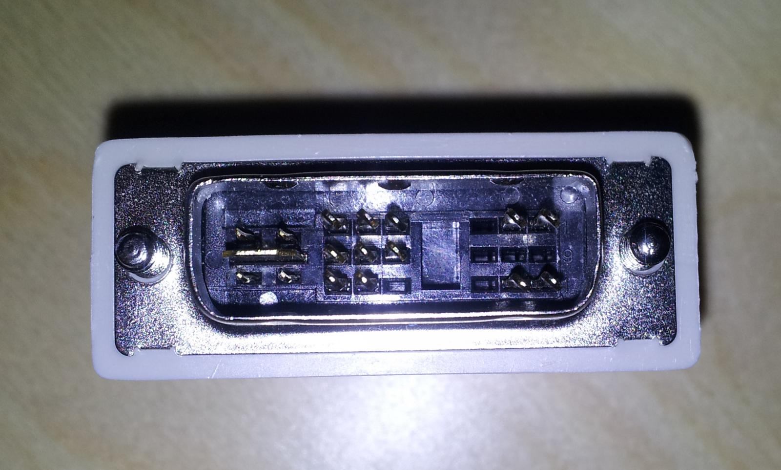 Hier seht ihr ein Foto meines DVI-Steckers. Wenn ich es so gemacht hätte, wie der Techniker der Firma Schenker beschrieben hat, den Stecker um 180° versetzt, was wäre passiert?
