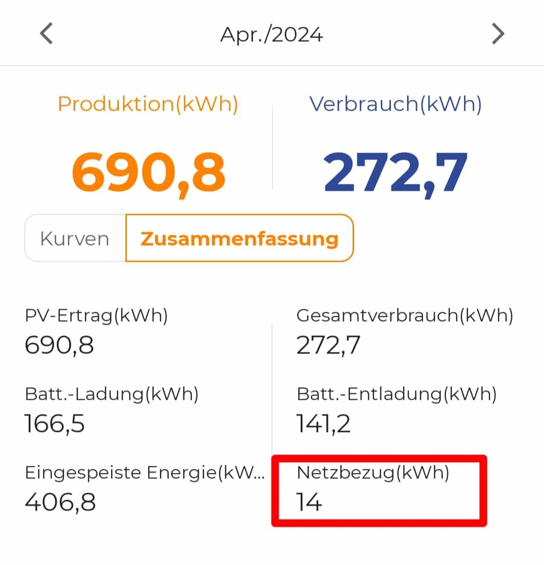 Mein Nachbar geht gerade einen Schritt weiter, der erweitert seine 6kWp Anlage auch, aber nicht nur ein Modultausch, sondern mit einer zusätzlichen 10kWp Anlage, und 22kWh BYD Speicher. Er will damit seinen ID.4 auch in der Nacht laden, da er nicht in der glücklichen Lage ist, dass er Homeoffice machen kann. Macht mit den doppelten Ladeverlusten nicht so viel Sinn, aber egal, ums Geld geht es da auch nicht so wirklich.