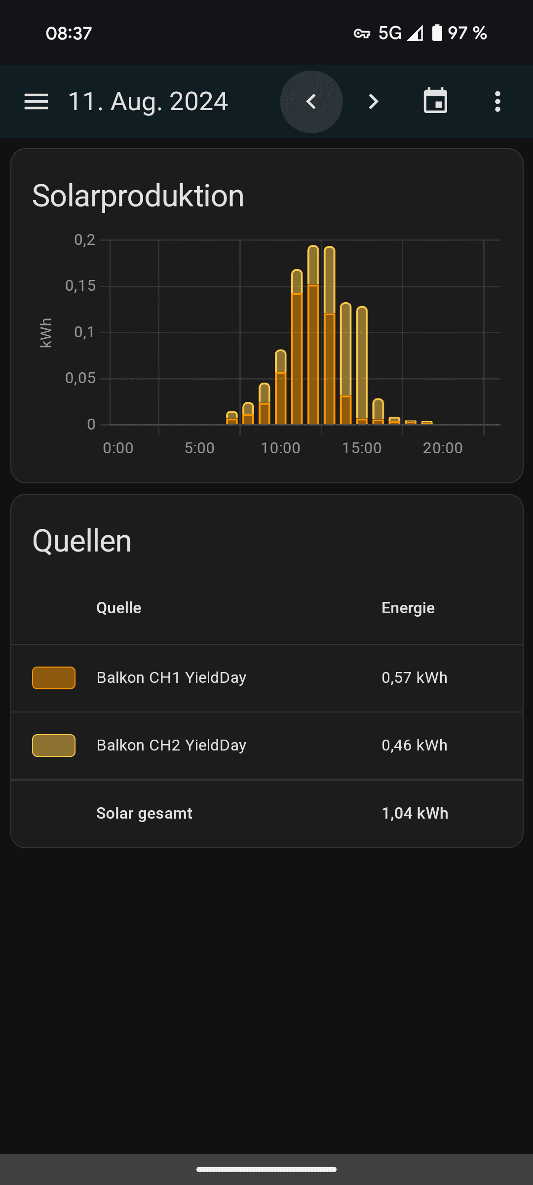 Nach 2,5 Jahren rumstehen ist mein BKW jetzt übrigens endlich in Betrieb und heute gabs mit Südausrichtung und ~45° Panelneigung 3,4kWh. Von denen ich wenns hochkommt maximal 1kWh selbst verbraucht habe.