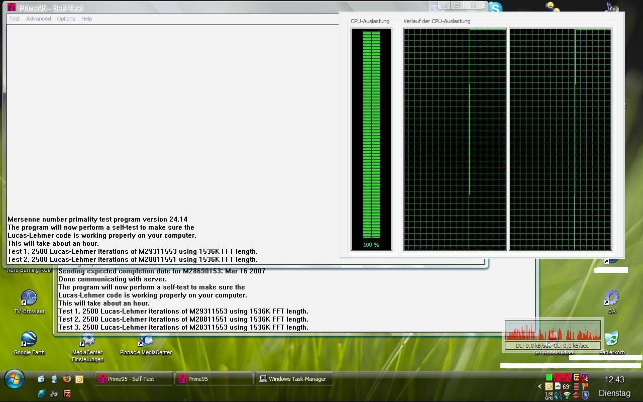 So hab mal zwei Instanzen von Prime95 angeworfen und manuell den Cores zugewiesen... komme dabei nach ca. 15 Minuten auf 69°C.