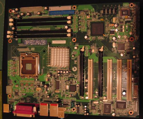 Zum Motherboard selbst verrät das Foto leider auch nicht sehr viel, was auch ohnehin zur Einführung dann vermutlich nicht mehr haltbar wäre. Allenfalls darf man anmerken, dass sich im Aufbau ein Marvell GbE Chip erkennen lässt, wie ihn NVIDIA derzeit auch bei den nForce3 und nForce4 Platinen zur Umsetzung ihres nativen Gigabit Ethernet verwendet. Ein Indiz, dass dieses Feature auch mit der nForce5 Southbridge erscheinen wird und dazu dann wohl auch die integrierte Hardware-Firewall bieten wird.