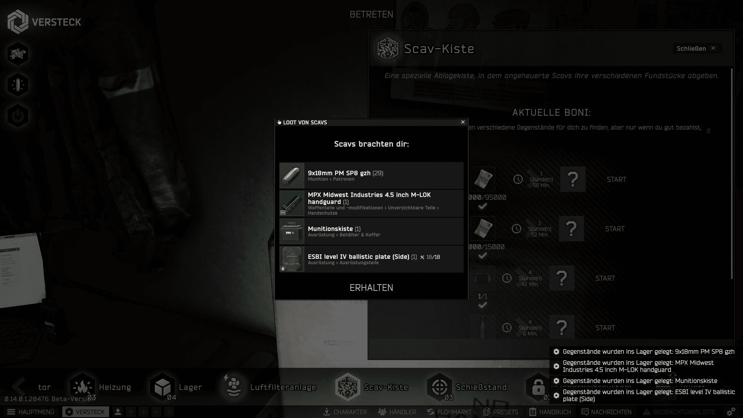 man braucht nur so 8 keys und kann damit eigentlich recht zuverlässig ledx oder zumindest so um die 1 mille profit farmen. sound geht insgesamt ehrlich gesagt, leider gibt es das problem mit den etagen auf fast allen maps. auf interchange zum beispiel hörst du manchmal leute auf der metallerne rolltreppe nicht, wenn du nicht direkt davorstehst und solche scherze.Mit dem resort bin ich nie warm geworden. Mag ich einfach nicht da rumlaufen. Glaube mir hat der katasrophale Sound damals alles kaputt gemacht.