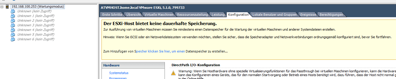 - Dann kannst Du den vSphere Client öffnen und hast sowohl den USB-Stick als auch den Datastore im Zugriff