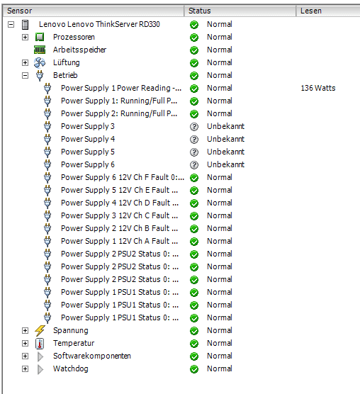 Ok, aber du hast das CIM immer noch nicht installiert, richtig? Sonst gäb es wie in dem Wiki Eintrag ein Untermenü "Storage" - und da du ja eine iBBU verbaut hast kommt auch kein unknown!