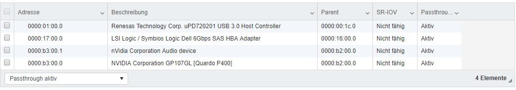 Was mich irritiert: ich habe offenbar 4 HBAs, nämlich an 000 (HBA 0+1), 004 (HBA4) und 023 (HBA3) - von denen nur der vmhba2 als "passthru" markiert ist. Der HBA sitzt aber angeblich auf 0000:17:00.0 bzw. 0000:16:00.0 (Parent).