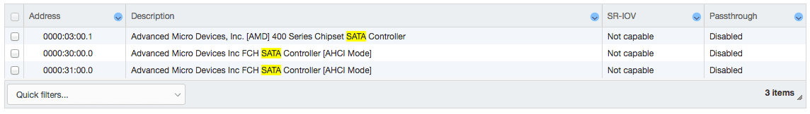 Allerdings wird beim Auswählen des SATA-Controllers mit der Adresse 0000:03:00:1 automatisch ein USB-Controller mit aktiviert. Ein einzelnes Abwählen des USB-Controllers ist nicht möglich.