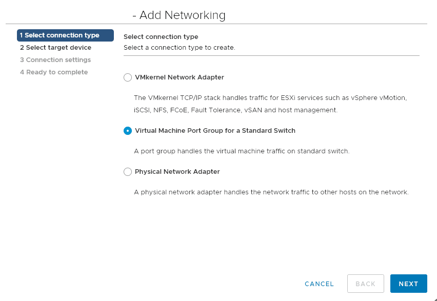 Den Management Haken solltest du für den vmk-Port noch checken, wenn das ein MGMT Port sein soll, dann sollte der Haken natürlich auch rein: