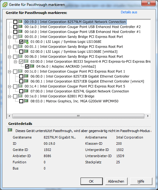 Werd ich gleich mal machen sobald auch der zweite Host wieder oben ist (der anscheinend nur mit USB 1.1 Tempo bootet