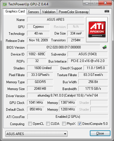 Bei deiner Auflösung kannst Du auf die 2GB getrost verzichten.Naja...aber das einzige, was wirklich interessant ist, das sind die 2GB pro GPU...ansonsten hier mal meine 5970er: