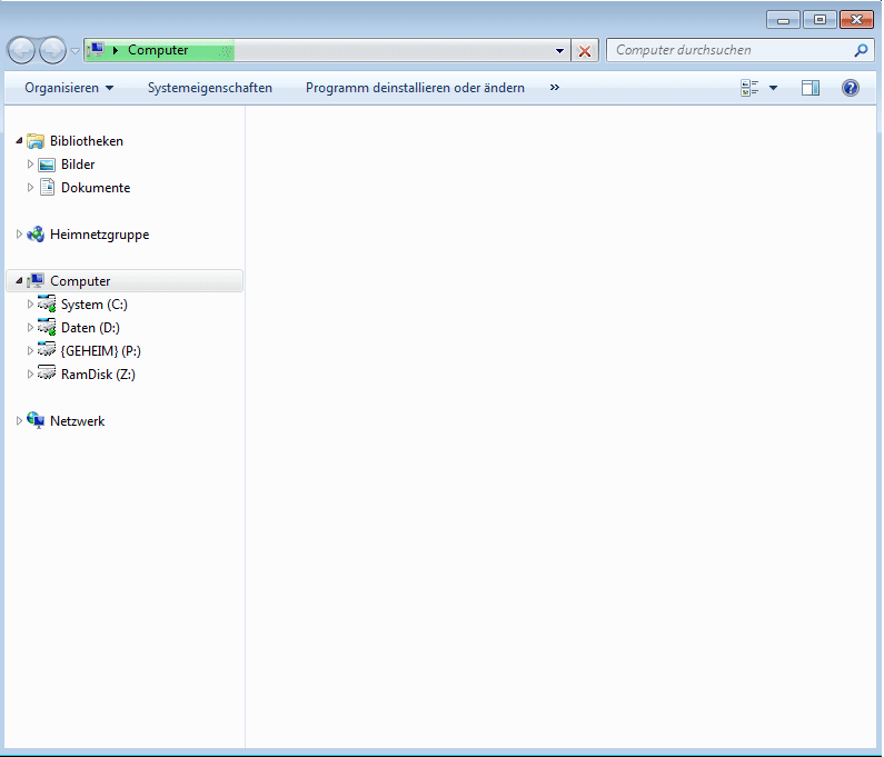 - wenn ich den Arbeitsplatz aufrufe, wird mir im Hauptbereich des Fensters kein Inhalt mehr angezeigt und der Ladebalken läd sich tot - er schreitet zwar voran, aber es passiert nichts (siehe Bild 2)