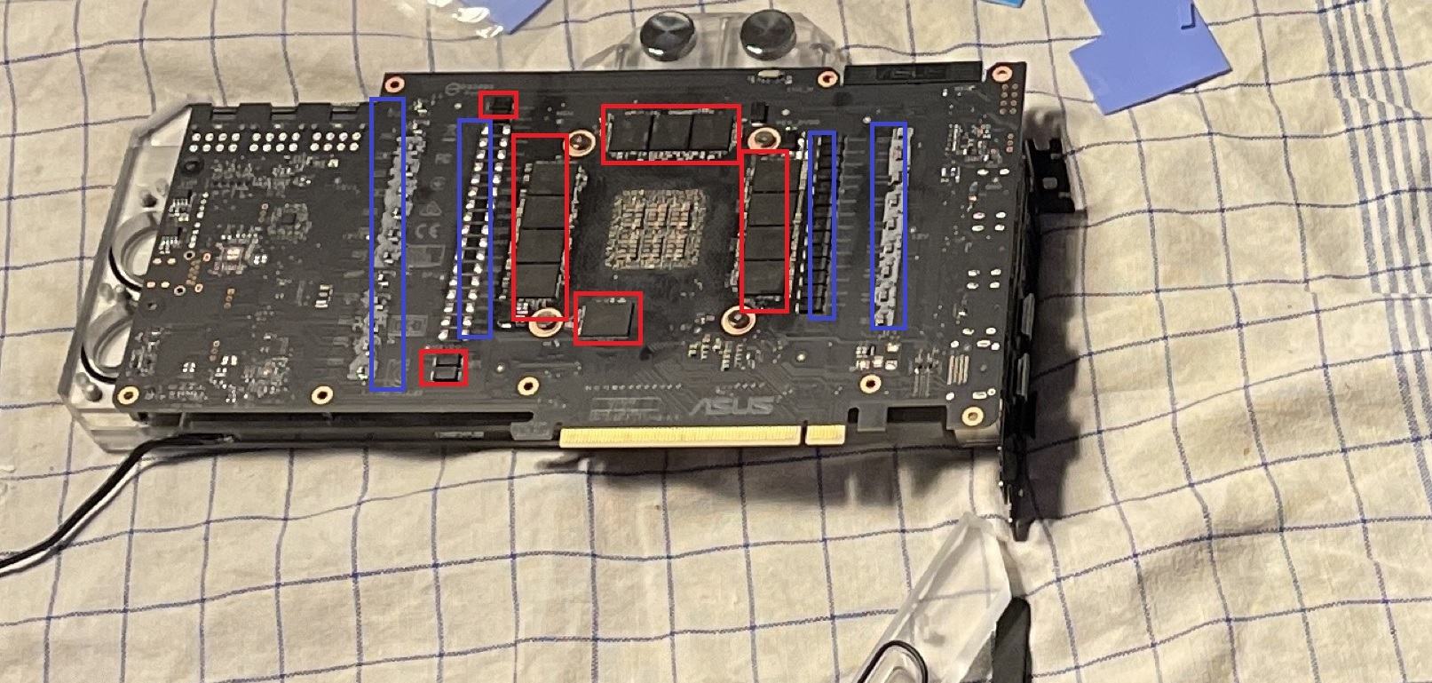 Wieso ich an der Stelle überhaupt welche ausgetragen habe ? naja , die originale Backplate der Strix hatte an der Stelle auch welche , darum habe ich dann auch welche dort aufgelegt.