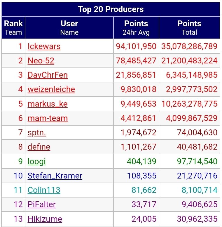 Toll, dass wir gerade ein echt aktives "Mittelfeld" haben. Sieht fast so aus, als ob die beiden inaktiven Fuzzies aus den Anfangsjahren auf 8 + 9 bald die Top-10 räumen müssen.