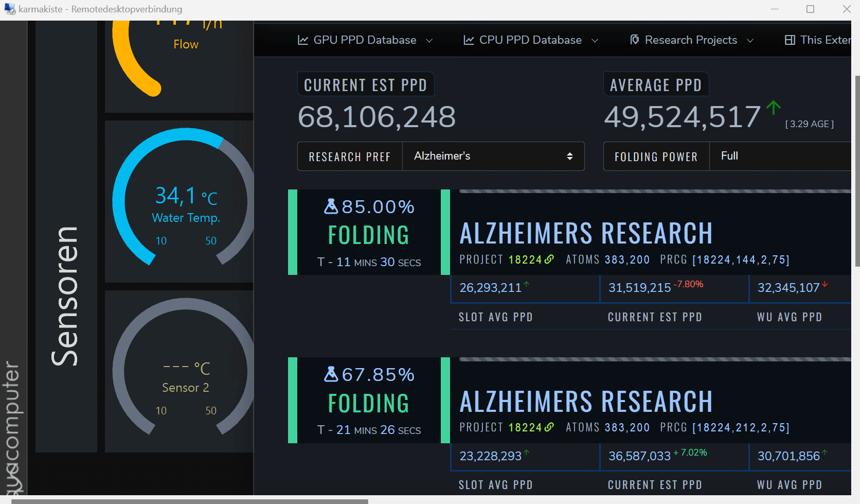 Ja, wirklich spannend, wie sprunghaft die PPD spätestens seit der letzten Clientversion von 2020 angestiegen sind. Glaub ab da kam erst Cuda ins Spiel? Naja, und die GPU-Entwicklung war ja auch phänomenal seitdem. Meine 2070 Super von Anfang 2020 konnte mit dem vorherigen Client nur nen Bruchteil der 3070er PPD Ende 2020.Aktuell hab ich die WUs fast gleich aber das 80ig-fache an Punkten.