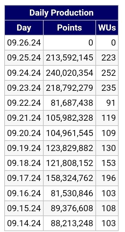 Ick finde nicht, dass es bei der "medizinischen Weltrettung" mit F@H überhaupt einen, wie auch immer, "falschen" Ansatz geben kann. Ist schließlich eine zu 100% altruistische Nummer, was wir hier veranstalten. Da kann es kein "mehr oder weniger altruistisch" geben. Egal ob einer mit nem Pi nun 3 WUs pro Woche erfaltet oder mit vast.ai mit zehn 4090ern zeitgleich unterwegs ist.