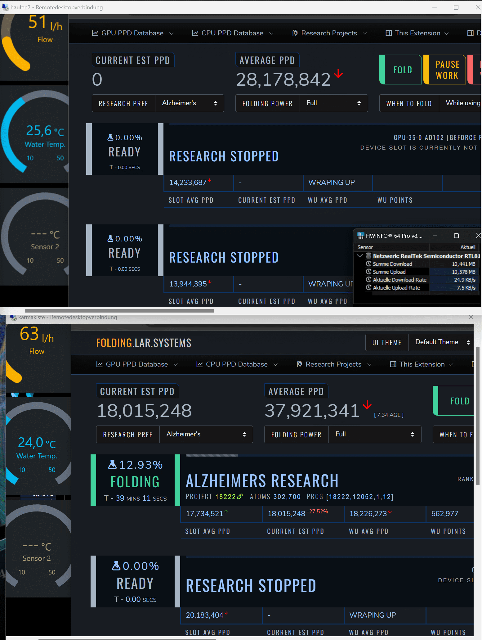 Irgendwie hänge ich gerade an nem DL-Server mit der einen Kiste, bei dem der DL ewig dauert, bzw. mir dann immer >20% PPD fehlen. Hoffentlich legt sich das bald wieder, bzw. ich bekomme die WUs wieder zeitnah.