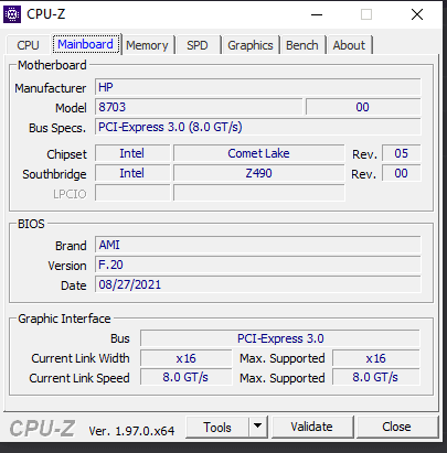 Für mich sieht das OK aus, das ist ein Intel Z490 Mainboard von HP laut deinem CPU-Z Screenshot und laut HP info Webseite.