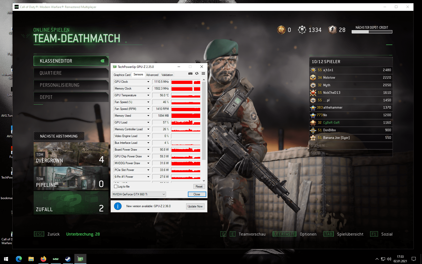 ich habe eine Geforce GTX 660 ti geschenkt bekommen und will damit cod 4 zocken was ja auch geht nur immer wenn online gehe bekomme ich diese meldung wie sie auf dem Bild zu sen ist.DirectX habe ich schon neu drauf und auch Grafikkarten teiber neu.Habe ein anderes singelplayer gespielt und null probs aber immer online bei desem game.Ich weiß keinen rat mehr und hoffe dasihr mir helfen könnt.