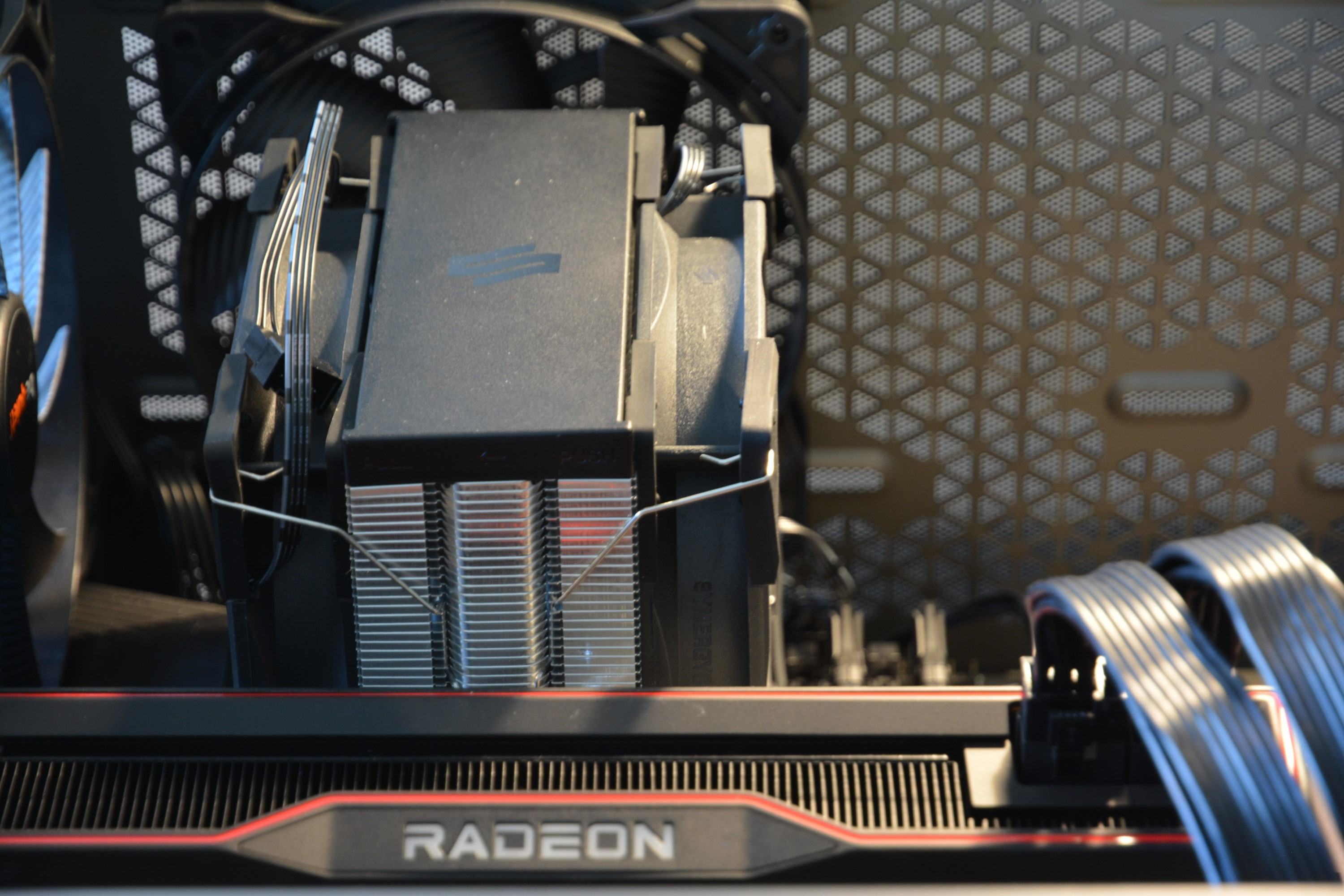 Das Pure Base Gehäuse bietet nicht ausreichend Luftstrom für die 6900 XT. Daher war das Frontpanel bei warmen Temperaturen immer ab. Zum Test waren allerdings alle Panels dran.