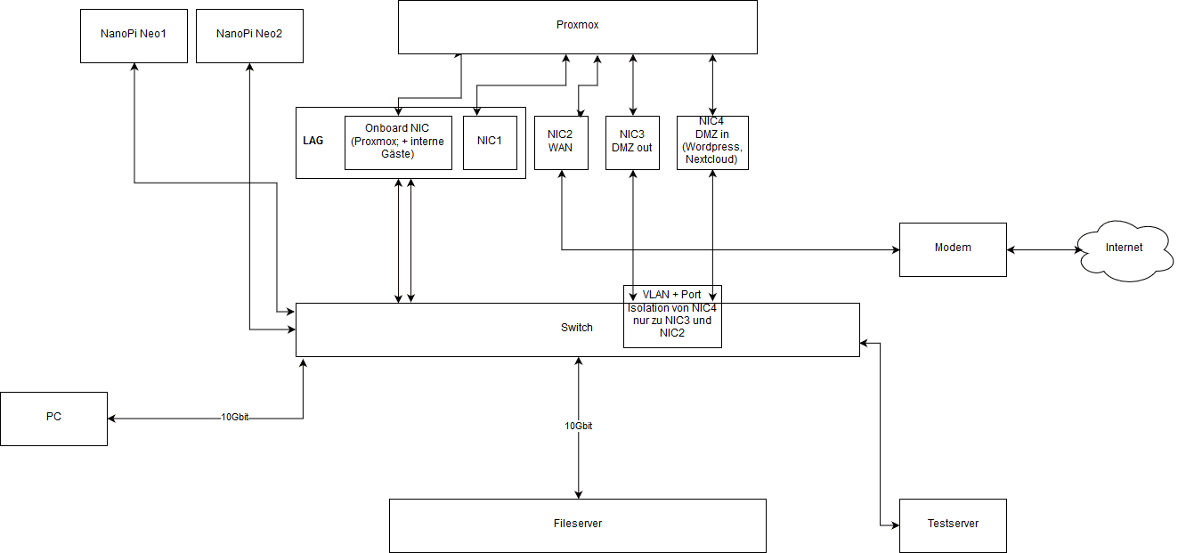Zur Proxmox NIC Konfiguration: Das hängt halt davon ab ob du DMZ brauchst oder nicht.