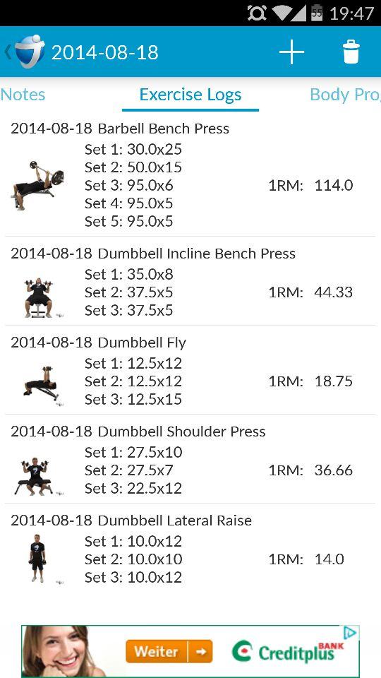 Und dann noch mal geguckt ob Flachbank mit etwas mehr Gewicht ohne Schulterprobleme geht, also 8x80kg Flachbank hinter her.