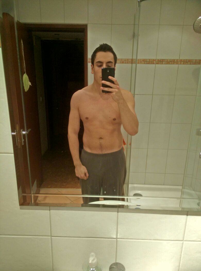 Also ich seh halt absolut keine Konturen von irgendwelchen Muskeln. Zumindest breit bist du auf keinen Fall ;)