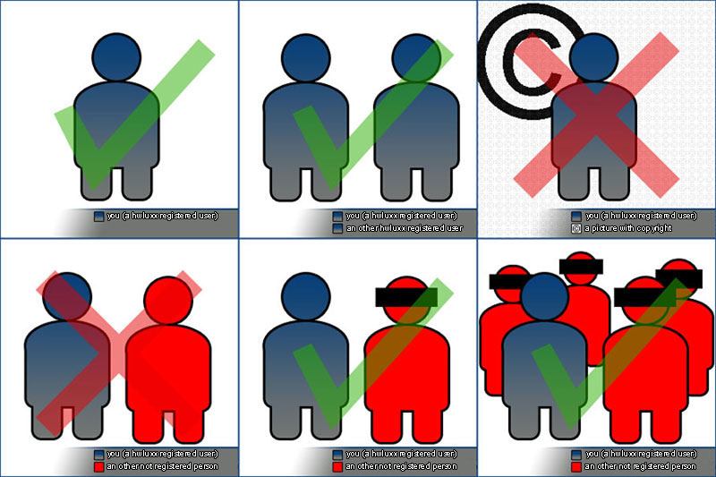 - andere nicht registrierte Personen auf den Bildern müssen unkenntlich gemacht werden (Augen schwärzen)
