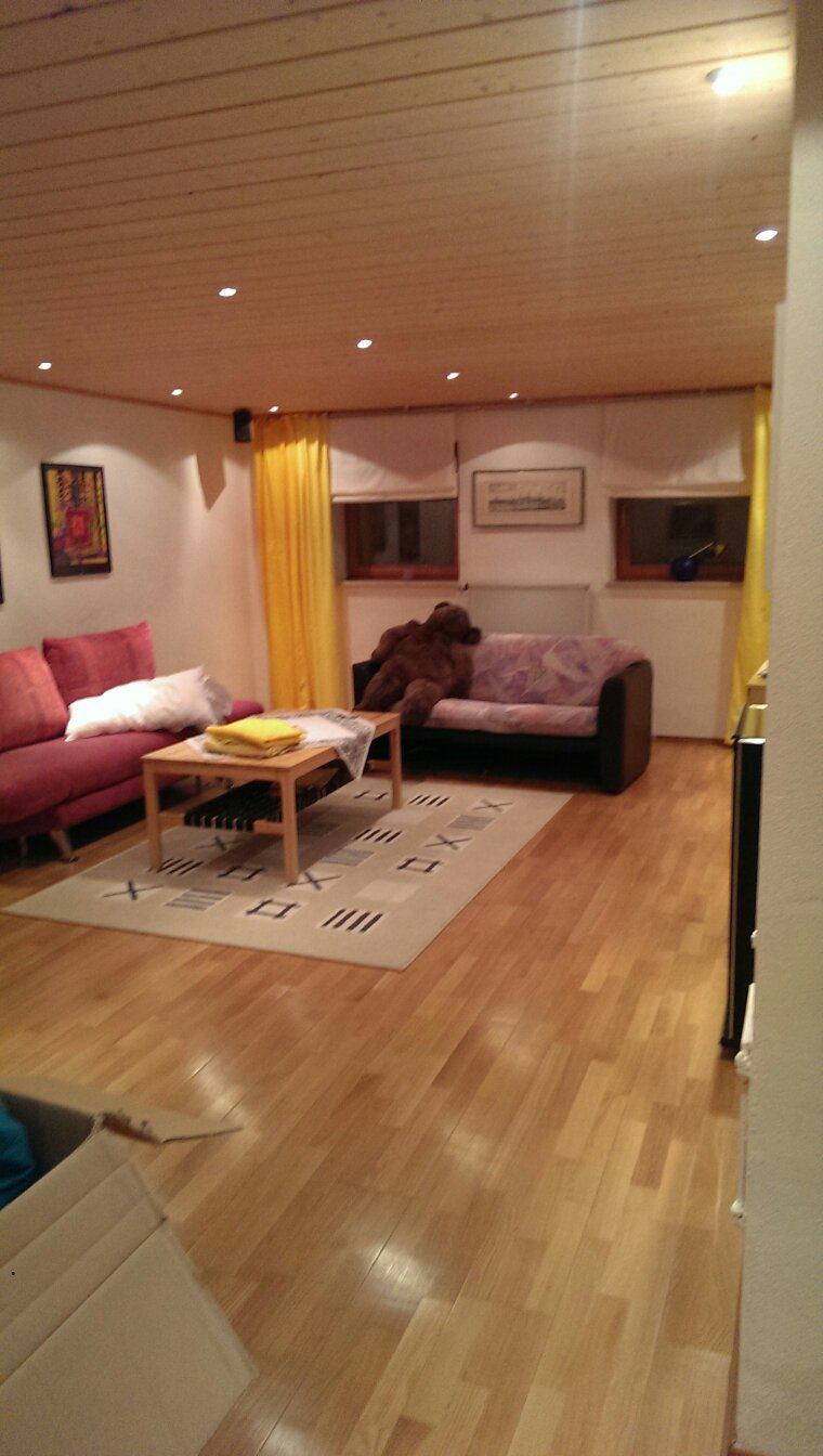 Ist das riesige, über Eck Sofa schon da? Ich finde das zu gewaltig. Ein einzelnes 2er oder 3er würde doch eventuell reichen.